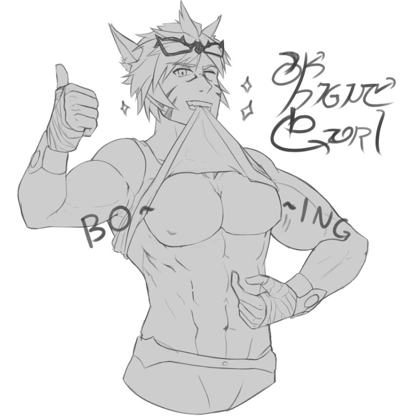 Fedand worked under various aliases for several years doing what can only be described as work that needed 'swords, gil, and magistrates' to handle properly. What should have been just any other evening was an experience for the weary 'adventurer'. It was a cage match with Gaja vs. The Orange Coerul that got his undivided attention. He quickly studied the craft as best as he could for a single excitable lad with little time and a thin budget.However, with luck, a bit of courage, and an eye for detail that was picked up while trench fighting... He landed a gig announcing and calling the matches in CRW! Who knows, this could lead to bigger things but for now, the big Roe is just happy to be working in a field that doesn't involve pulling a 'mori' on some fools... Yeah, calling good, clean, down the middle wrestling matches... It should be a fun time.He seems determined to keep up a chipper demeanor, even as he seems upset or annoyed. An ever present item on his person is an old trench knife that he toys with like someone would toy with a quill in their fingers...